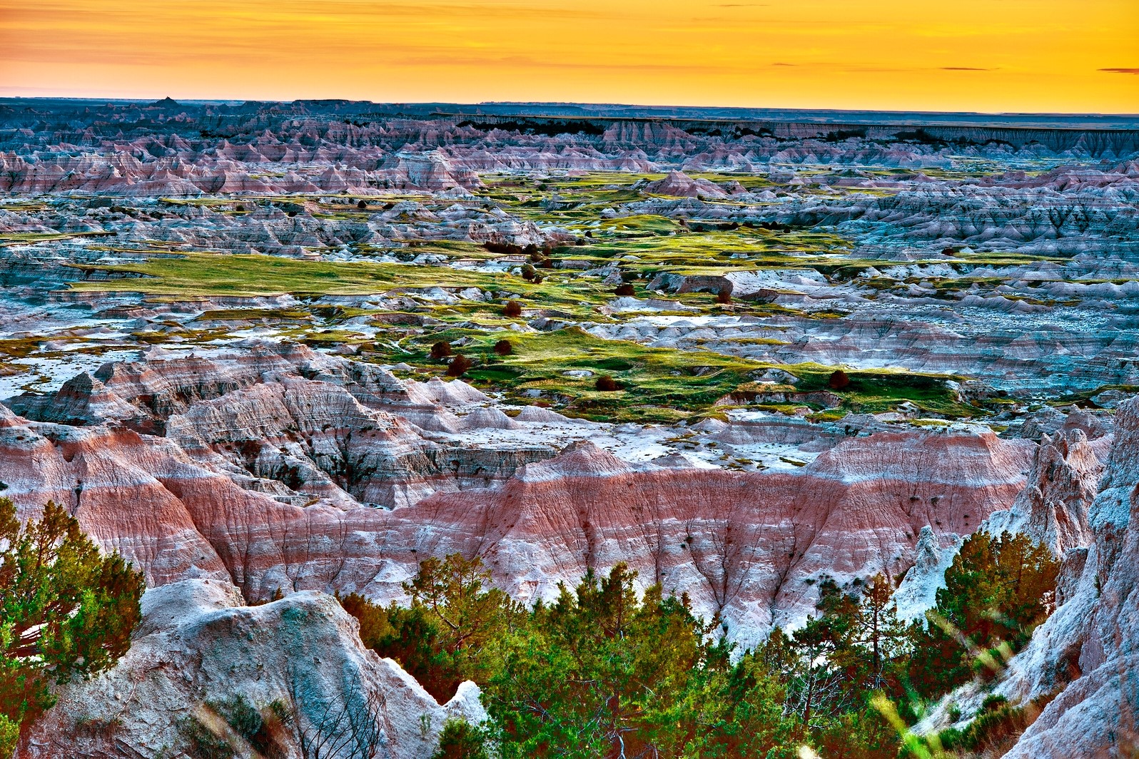 미국 사우스다코타(South Dakota) 주의 남서부에 위치한 배들랜즈 국립공원(Badlands National Park)은 봉우리부터 협곡 바닥에 이르는 지형은 수천만 년 동안 모래, 미사, 점토의 침전물이 쌓이고 강물과 계곡물에 침식되어 황갈색, 갈색, 회색, 노란색, 검정색의 뚜렷한 암석층이 형성된 결과다. 지형의 신비를 보고자 많은 이들이 찾는 987㎢의 공원에는 점토질을 좋아하는 갖가지 풀들이 사는 프레이리(Prairie)가 있고 포유류, 파충류, 조류, 곤충을 포함한 야생동물 및 400여 종의 식물이 서식하고 있다